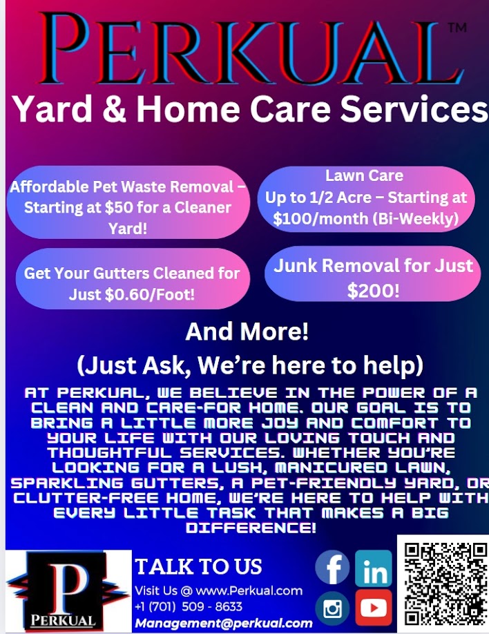 Elevating homes and properties across Minot, ND, takes a diverse skill set, which we bring to every project at Perkual. Our experts combine over 4 years of experience with a dedication to delivering reliable results for both indoor and outdoor spaces. Whether you need lawn care services, junk removal, gutter cleaning, or yard cleanup, our focus is on leaving properties better than before. By broadening our scope to include tasks like garbage can cleaning and pet waste cleanup, we create spaces that are as clean as they are welcoming.